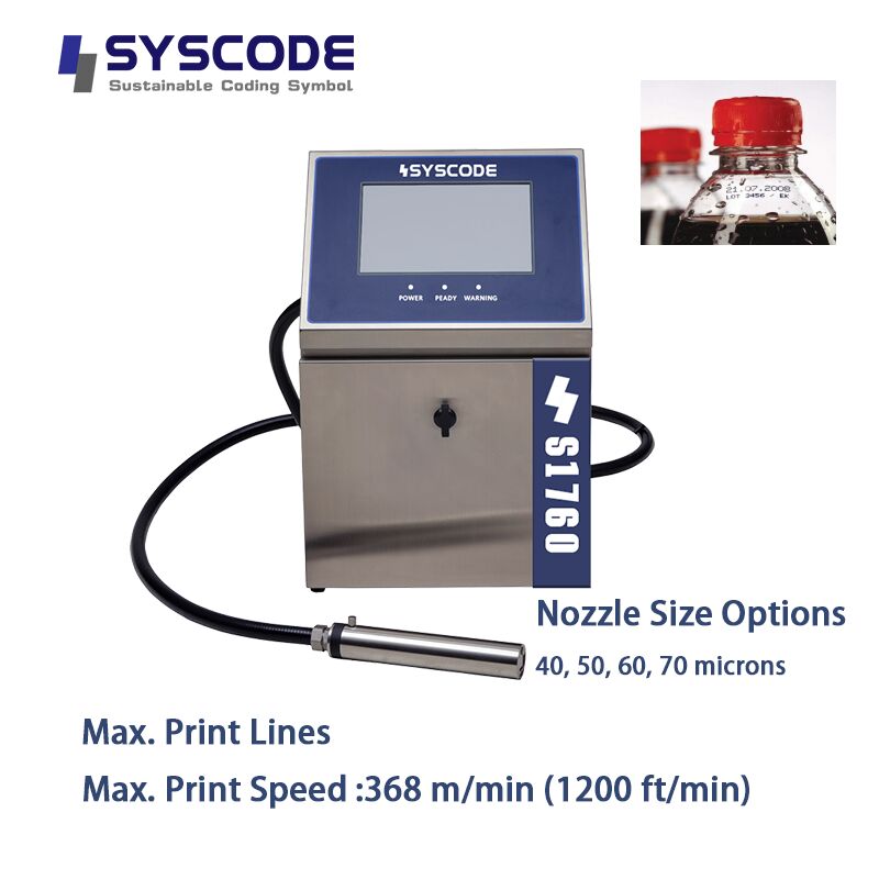 Outstanding Performance & Flexibility: The S1760 supports up to 5 lines of printing, with character height adjustable from 1.2mm to 20mm. Equipped with various nozzle sizes (40, 50, 60, 70 microns), it achieves a maximum printing speed of 368 meters per minute, meeting the needs of high-speed production lines. Its unique ink system is compatible with multiple ink types (fast-drying, waterproof, high adhesion), ensuring clear, durable marks on various substrates (such as plastic, metal, glass, paper, rubber, ceramic), whether porous, non-porous, curved, or recessed.